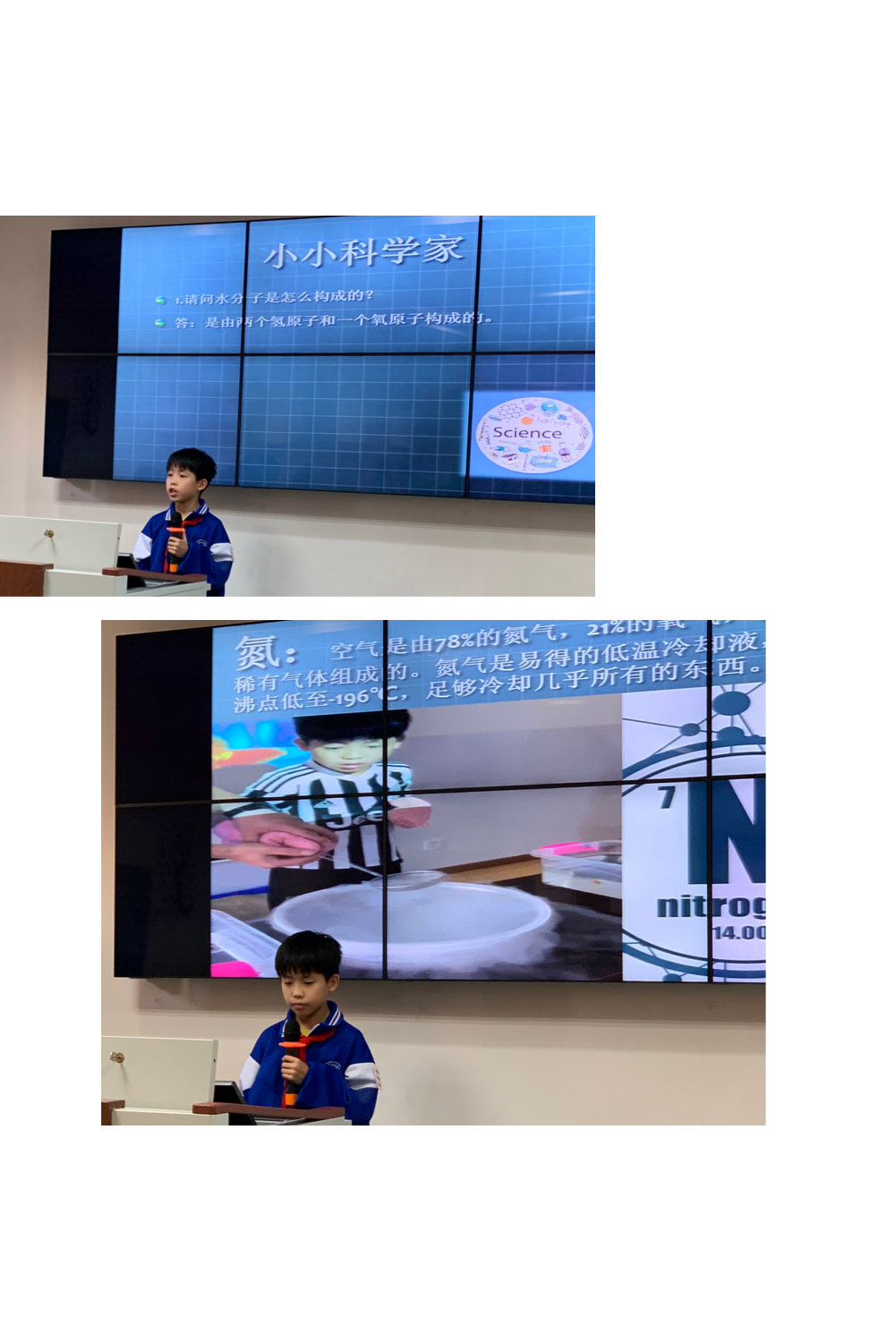 五年五班屠殊同同学把关注点放在化学领域,讲述《神奇的化学现象》。通过深入浅出地介绍生活中典型的、通俗的化学现象,让大家既感觉有趣、神奇,同时又拓展了知识,激发了探索生活中典型的化学现象的热情,为同学们敲开了化学的大门。