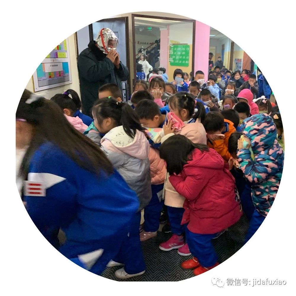 9时30分,A区、B区教学楼内突然浓烟四起,安全负责人立即用哨声示意师生们迅速撤离,各班任课教师马上组织学生做好防护并紧急疏散,同学们快速用湿毛巾捂住口鼻,弯腰前行,按照预定路线井然有序地撤离教学楼。两位保安叔叔迅速戴好防毒面具到楼内各角落巡查,负责各楼梯口疏导的老师始终坚守岗位,直到全体学生通过,才迅速撤离。撤离到操场的同学在班主任老师的带领下,整队、清点人数,全校学生无一人掉队,全部到达安全位置。