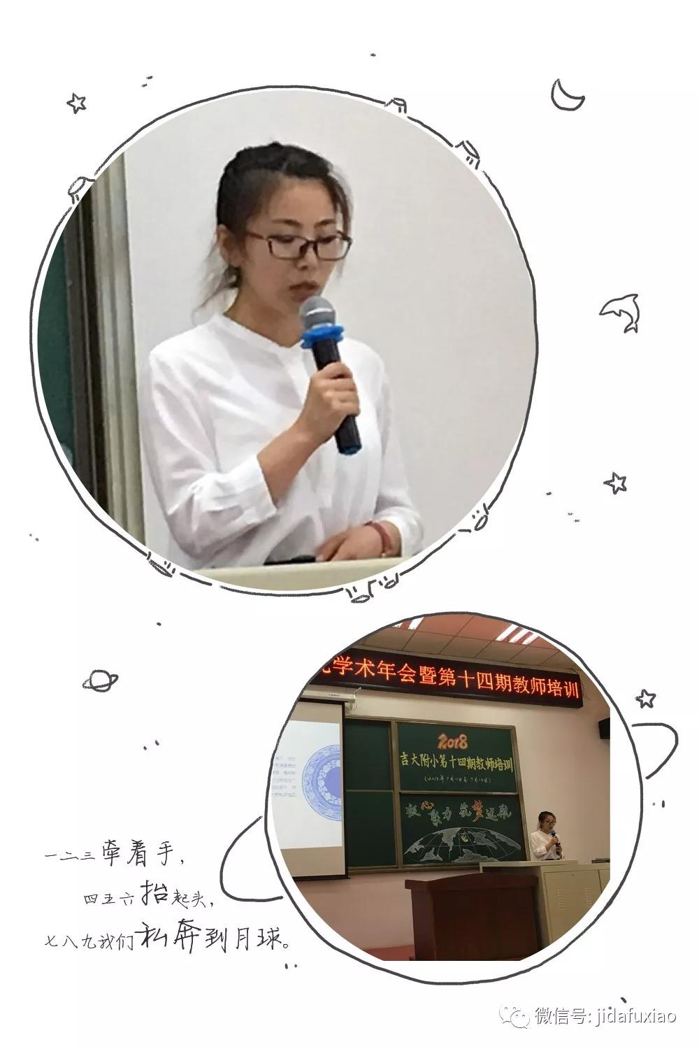 王诗迪老师汇报了《我与吉大附小这五年》。她细数了工作中的点点滴滴,遇到的问题、寻求的帮助;与同事的合作、与孩子的磨合;收获的经验、获得的启迪等,引发了大家的思考,也激起了大家的共鸣。