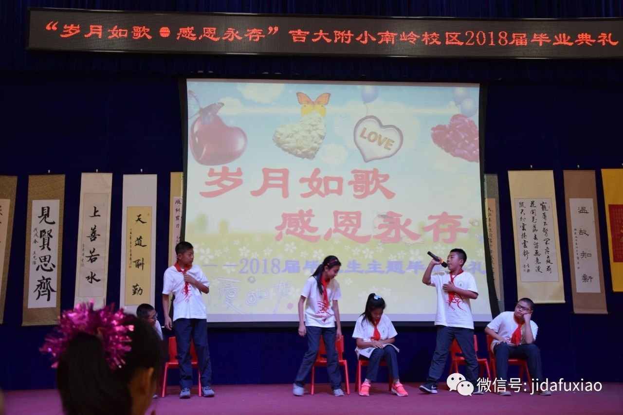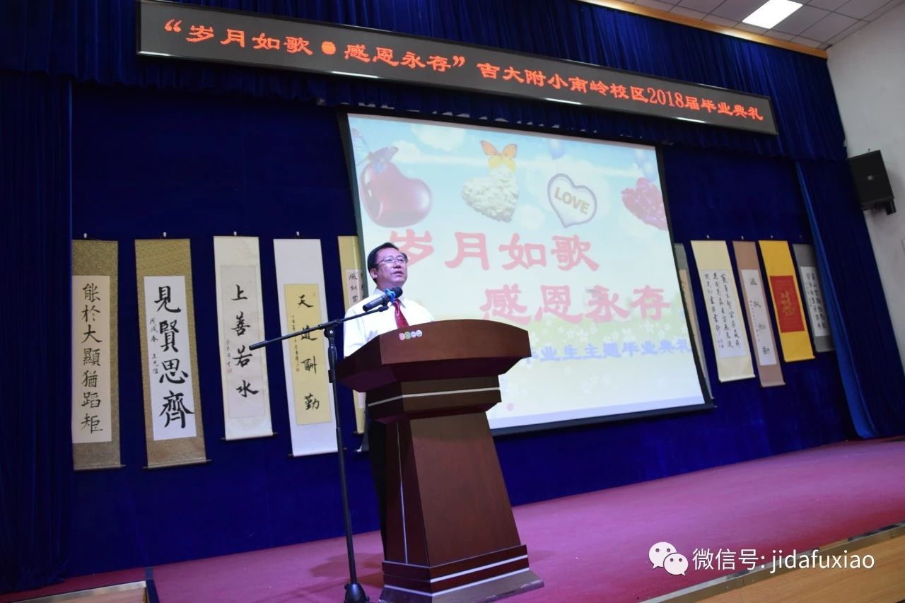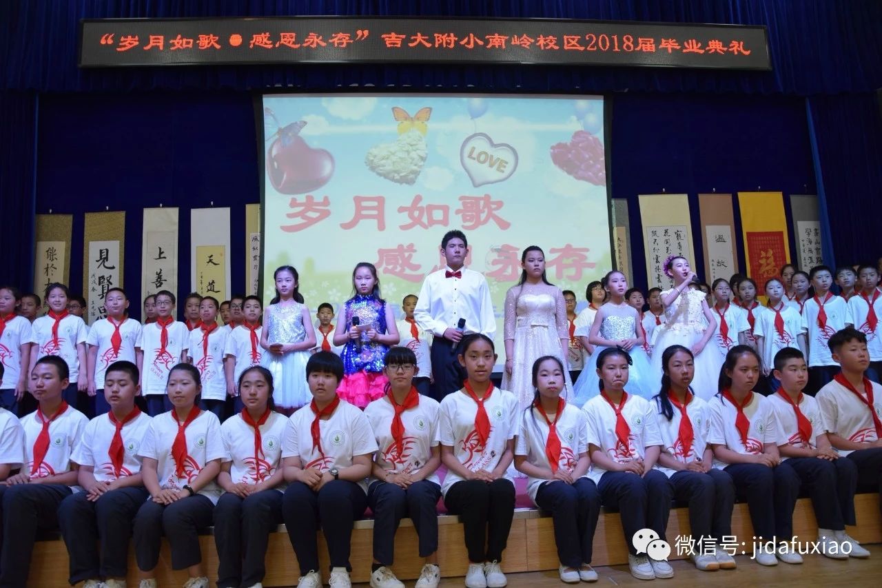 在这盎然绽放生命的夏日,吉大附小南岭校区隆重召开了2018届毕业生“岁月如歌,感恩永存”主题毕业典礼。“感恩母校,感恩师长,感恩伙伴”三个篇章完美融合,充满了回忆,充满了深情,充满了感恩,充满了留恋,为孩子们的小学生活画上了圆满的句号,涂上了绚烂的色彩。